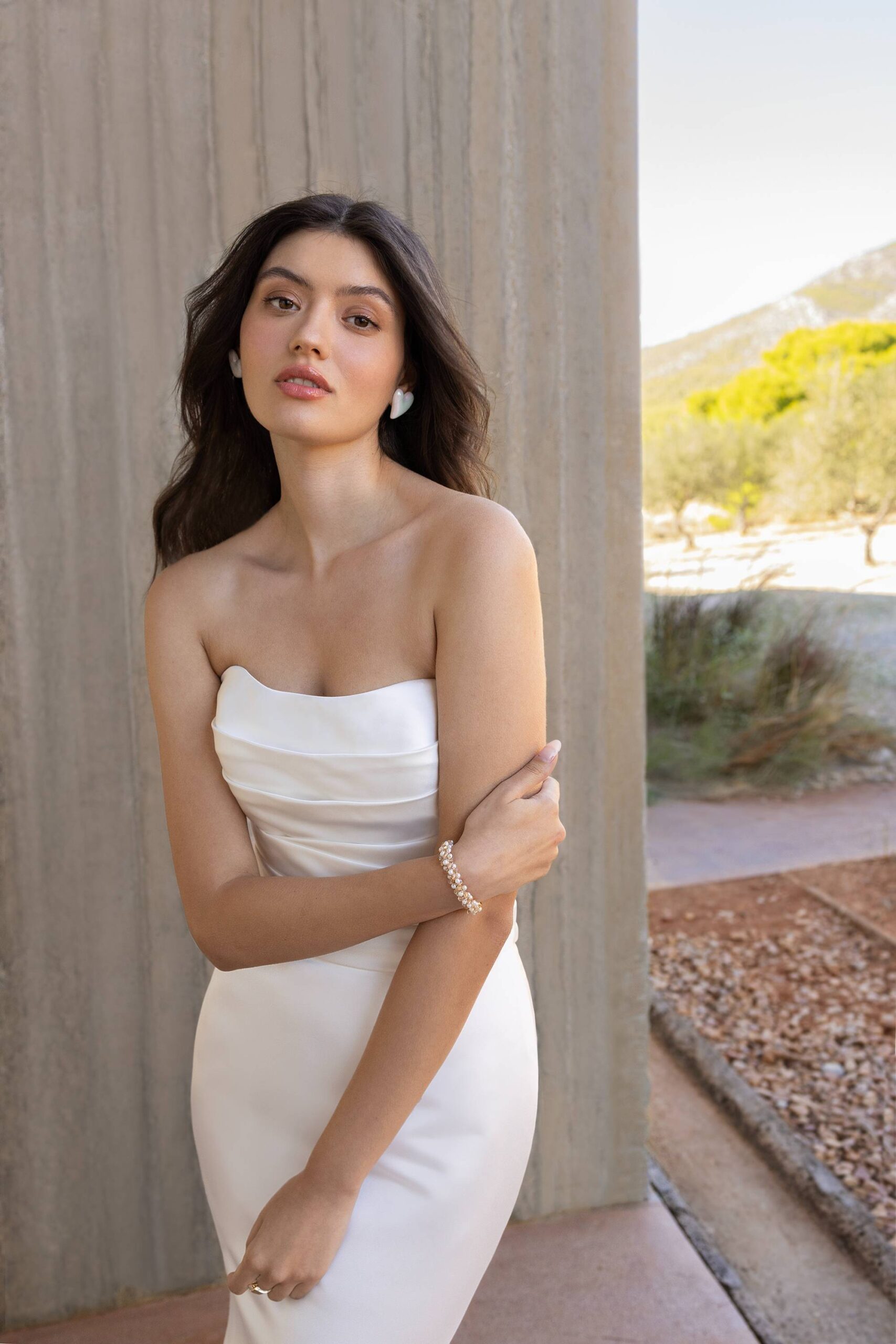 Robe de mariée Orchidée simple près du corps sirène bustier satin sans dentelle. Petit prix Boutique Mariage essayer Paris showroom rdv